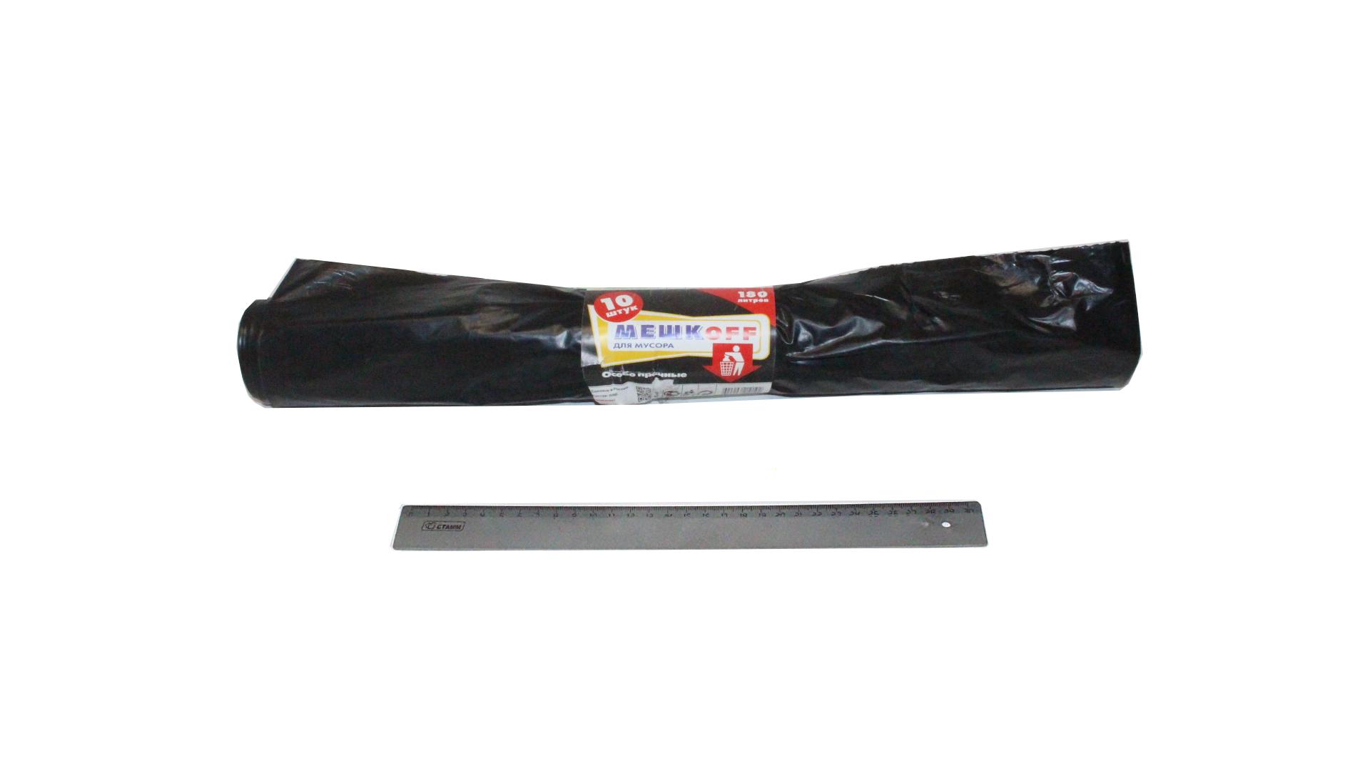 Мешок мусорный 180 л. (10шт/12рул) черный ПВД МЕШКОFF особо прочный . Пакет предназначен для упаковки или перевозки хозяйственных товаров, одежды, сыпучих материалов и других предметов домашнего пользования, упаковки покупок в магазинах, складирование и утилизаци бытовых мусорных отходов и прочее.