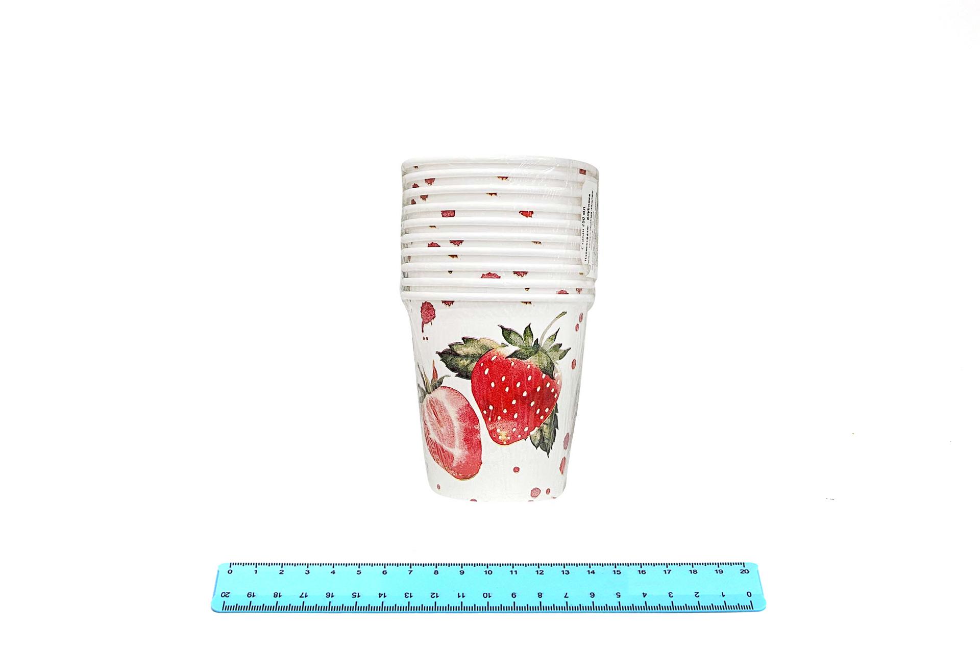 Стакан бумажный 250 мл. Клубника (10шт/48уп) /Булгари - это удобный и практичный аксессуар для вашего стола. Изготовлен из 100% целлюлозной бумаги, обеспечивает надежную защиту от протекания и потери жесткости. Стакан подходит для горячих и прохладительных напитков.