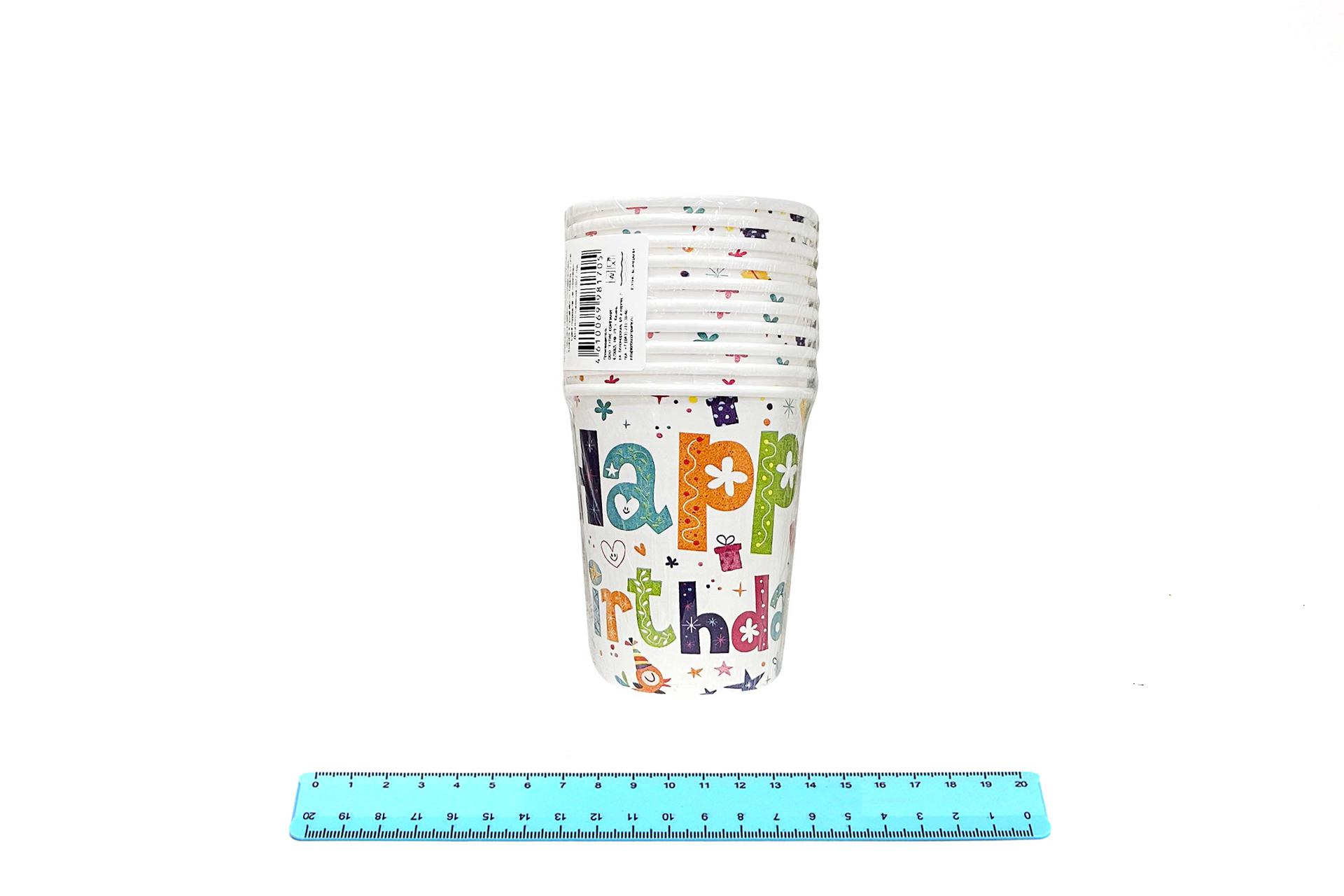 Стакан бумажный 250 мл. Happy birthday (10шт/48уп) - это удобный и практичный аксессуар для вашего стола. Изготовлен из 100% целлюлозной бумаги, обеспечивает надежную защиту от протекания и потери жесткости. Стакан подходит для горячих и прохладительных напитков.