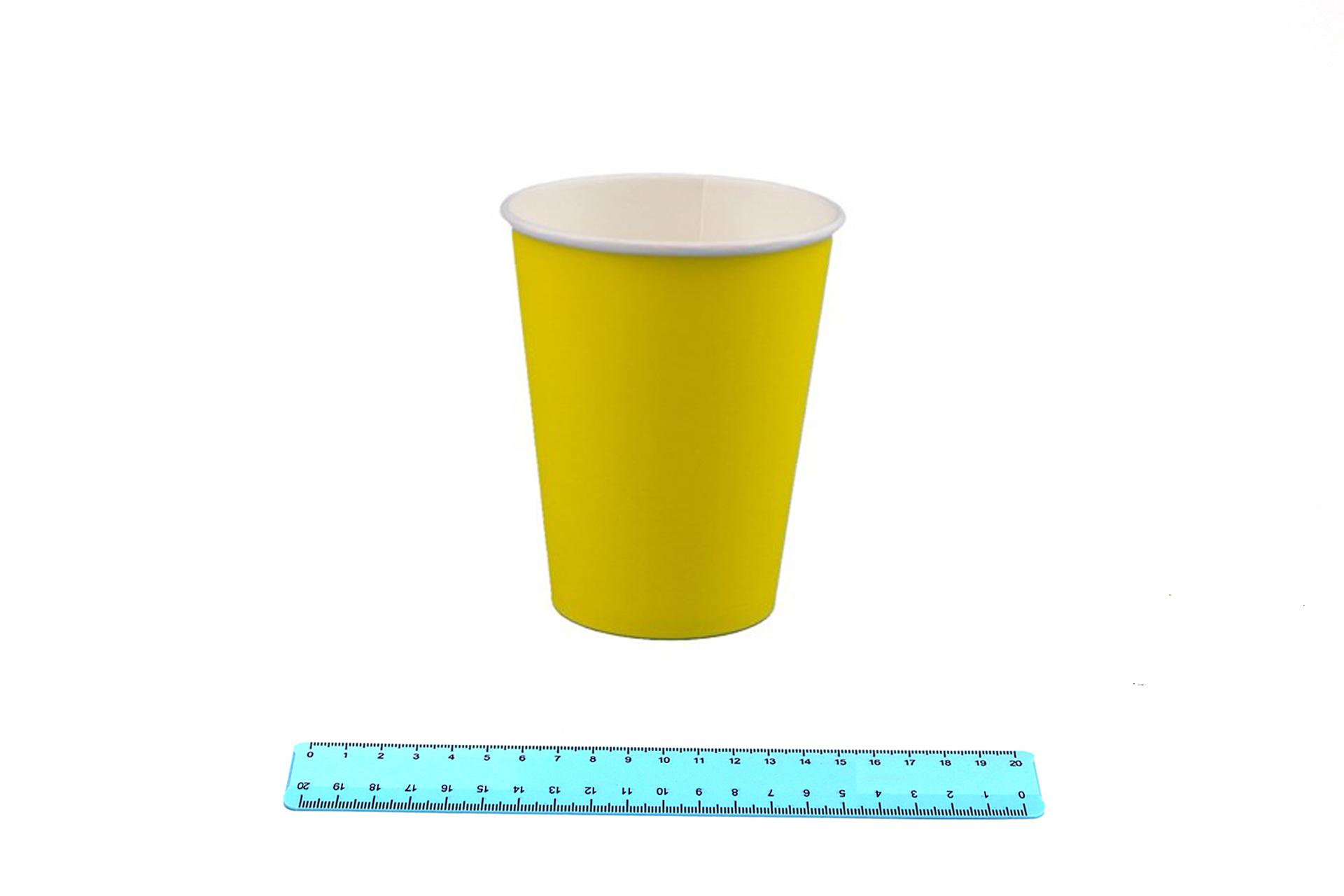 Стакан бумажный 350 мл. (50шт/20уп) Желтый/Л - это удобный и практичный аксессуар для вашего стола. Изготовлен из 100% целлюлозной бумаги, обеспечивает надежную защиту от протекания и потери жесткости. Стакан подходит для горячих и прохладительных напитков.