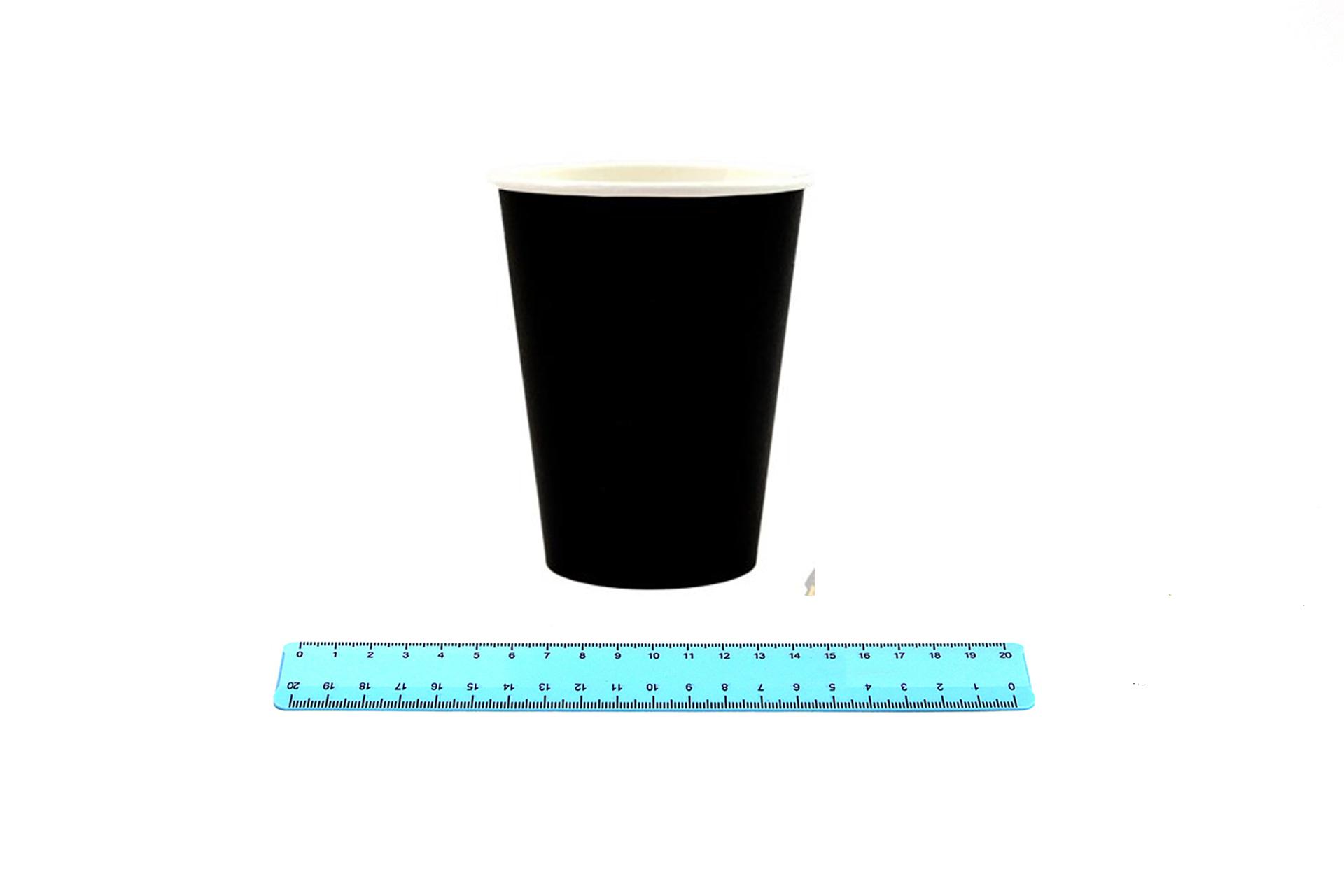 Стакан бумажный 350 мл. ЧЕРНЫЙ (50шт/20уп) - это удобный и практичный аксессуар для вашего стола. Изготовлен из 100% целлюлозной бумаги, обеспечивает надежную защиту от протекания и потери жесткости. Стакан подходит для горячих и прохладительных напитков.