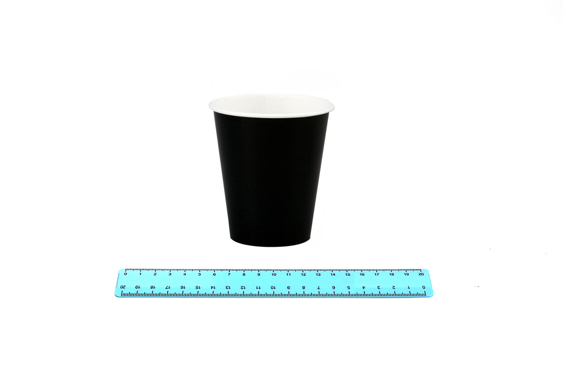 Стакан бумажный 250 мл. ЧЕРНЫЙ (50шт/20уп) - это удобный и практичный аксессуар для вашего стола. Изготовлен из 100% целлюлозной бумаги, обеспечивает надежную защиту от протекания и потери жесткости. Стакан подходит для горячих и прохладительных напитков.