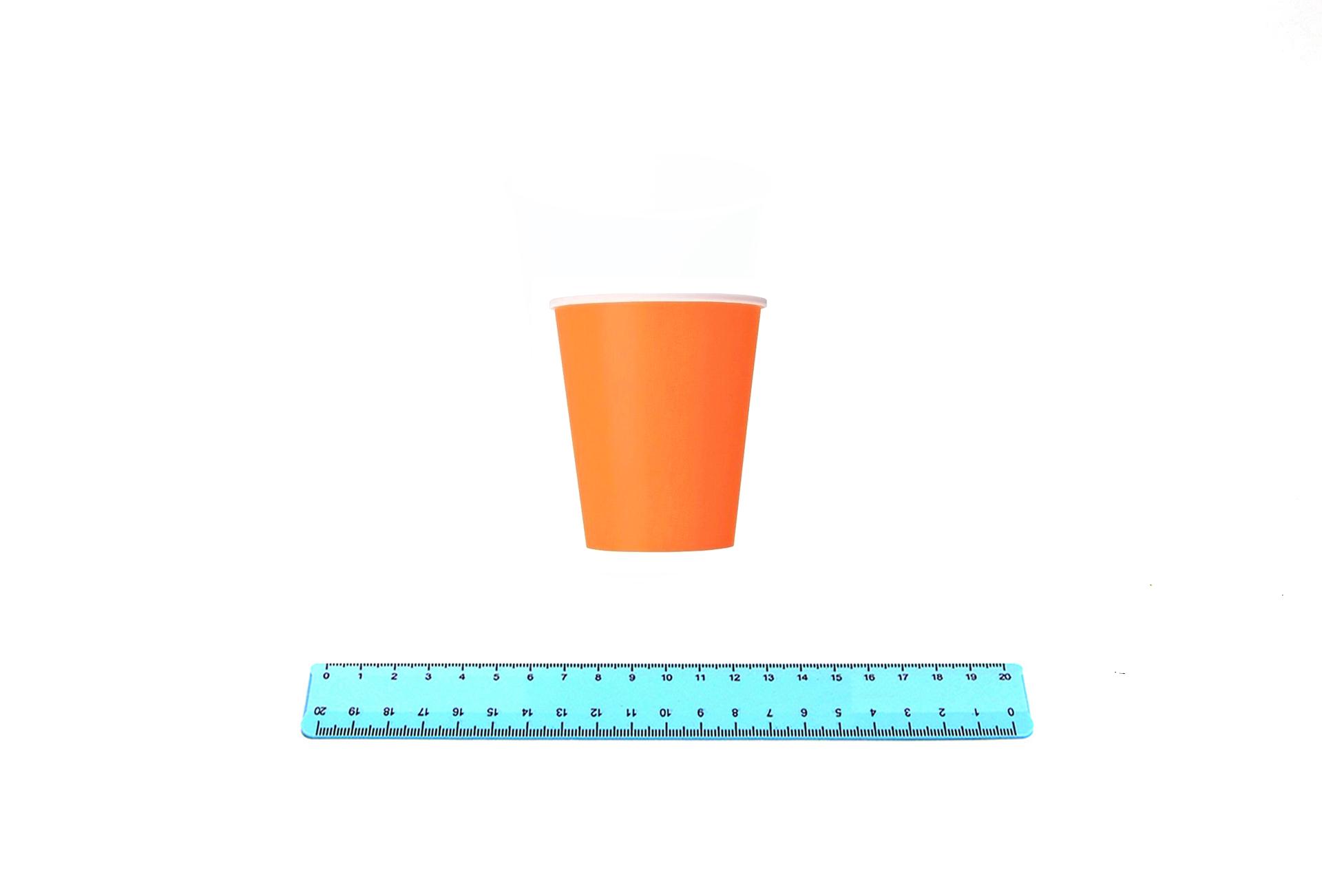 Стакан бумажный 250 мл. ОРАНЖЕВЫЙ (50/1000) - это удобный и практичный аксессуар для вашего стола. Изготовлен из 100% целлюлозной бумаги, обеспечивает надежную защиту от протекания и потери жесткости. Стакан подходит для горячих и прохладительных напитков.