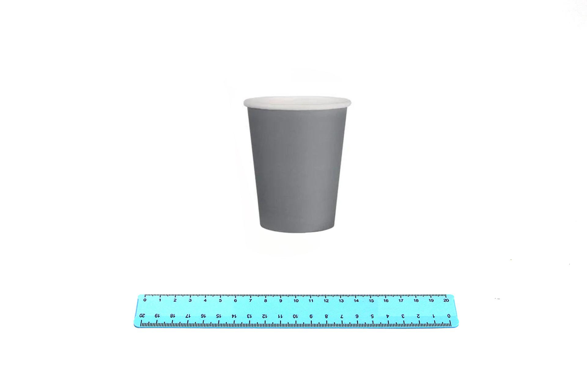 Стакан бумажный 350 мл. СЕРЫЙ (50/1000) - это удобный и практичный аксессуар для вашего стола. Изготовлен из 100% целлюлозной бумаги, обеспечивает надежную защиту от протекания и потери жесткости. Стакан подходит для горячих и прохладительных напитков.