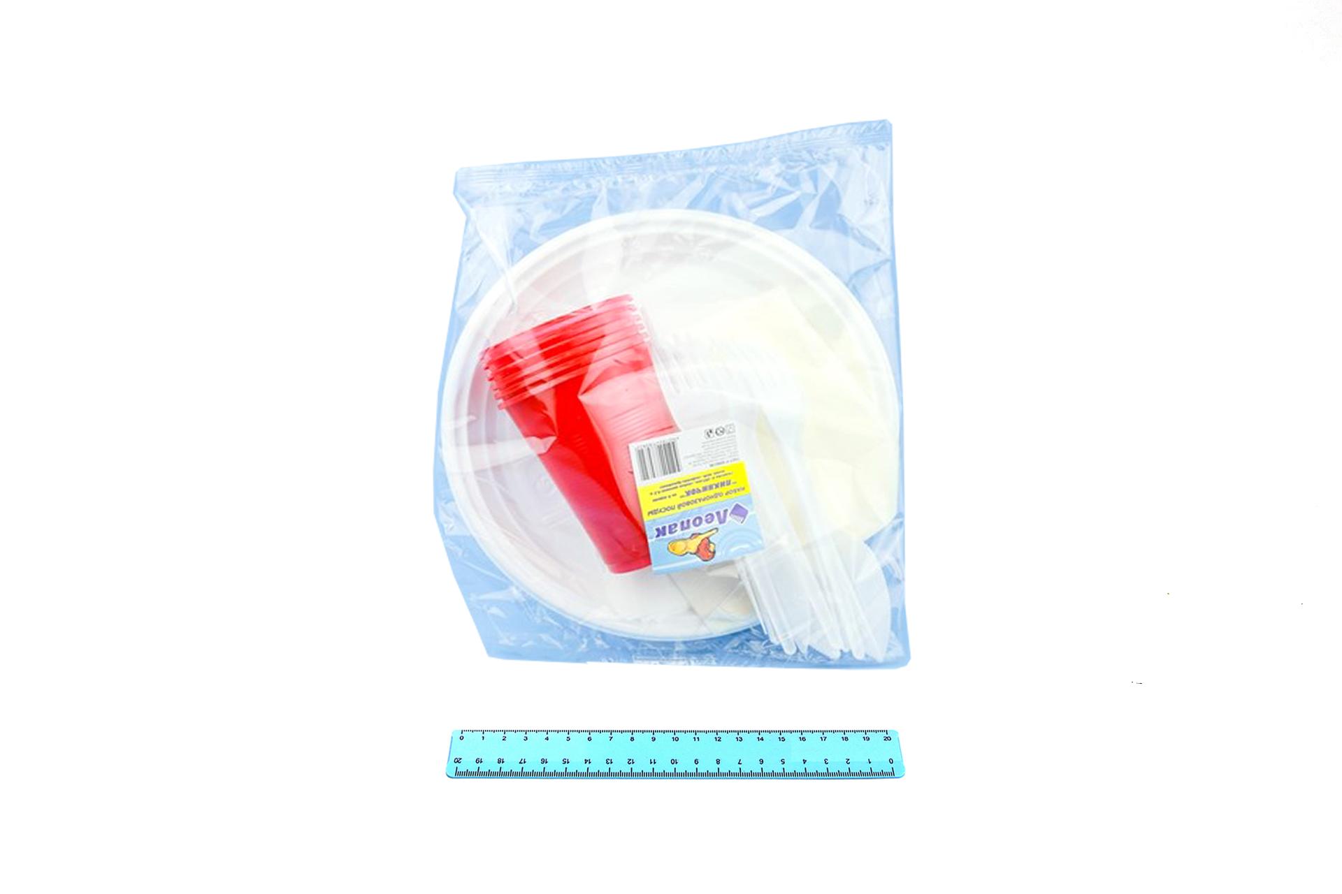 Набор "ПИКНИЧОК" (25 уп.) белый "Э" на 6 персон "Леопак": Тар d=205мм, Нож, Вилка, Салфетка, Ст. 0,2.1879/1-uds
