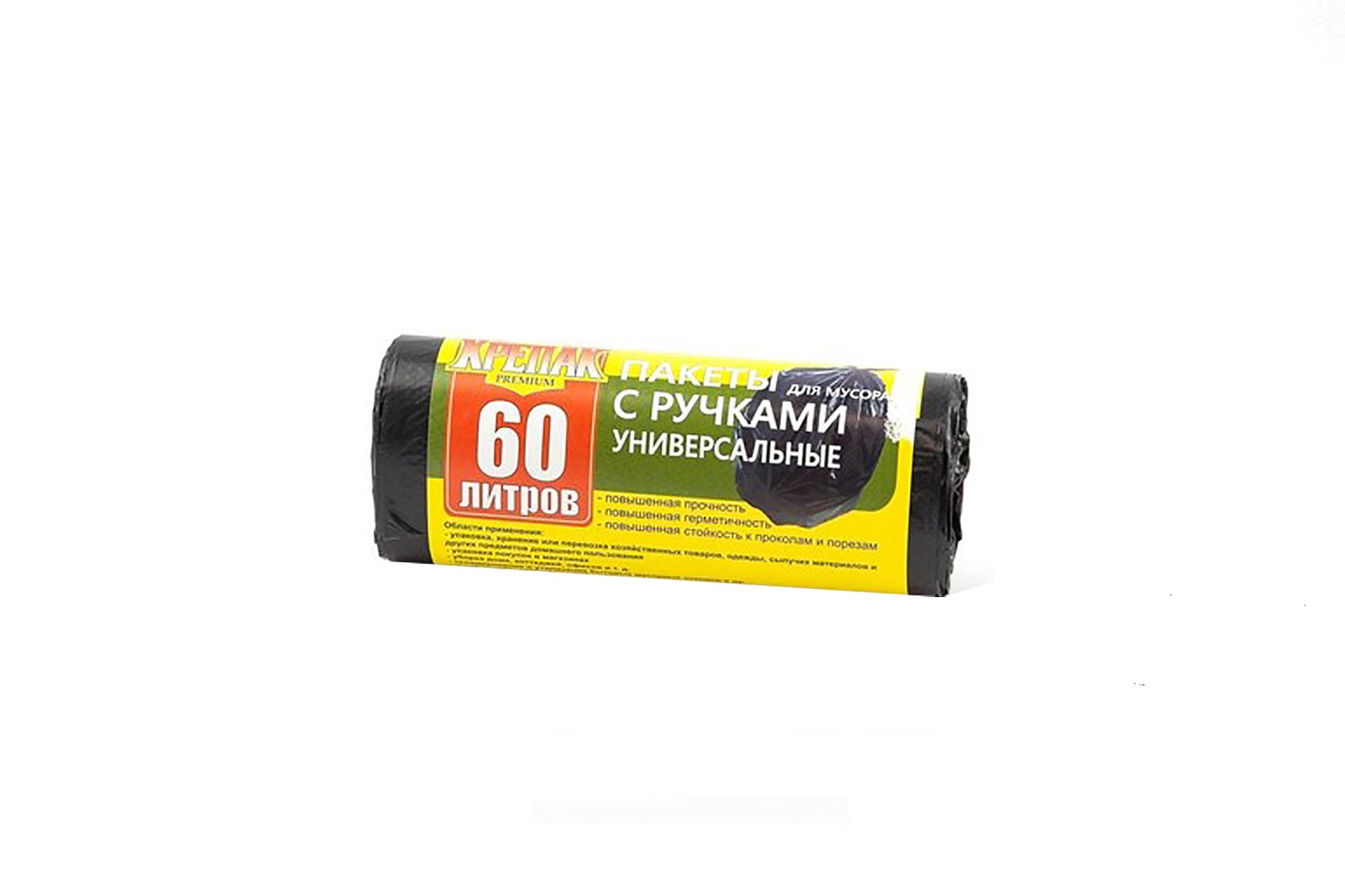 Мешок мусорный 60 л. (20шт/50рул) черный КРЕПАК с ручками в рулоне.3029/013-uds